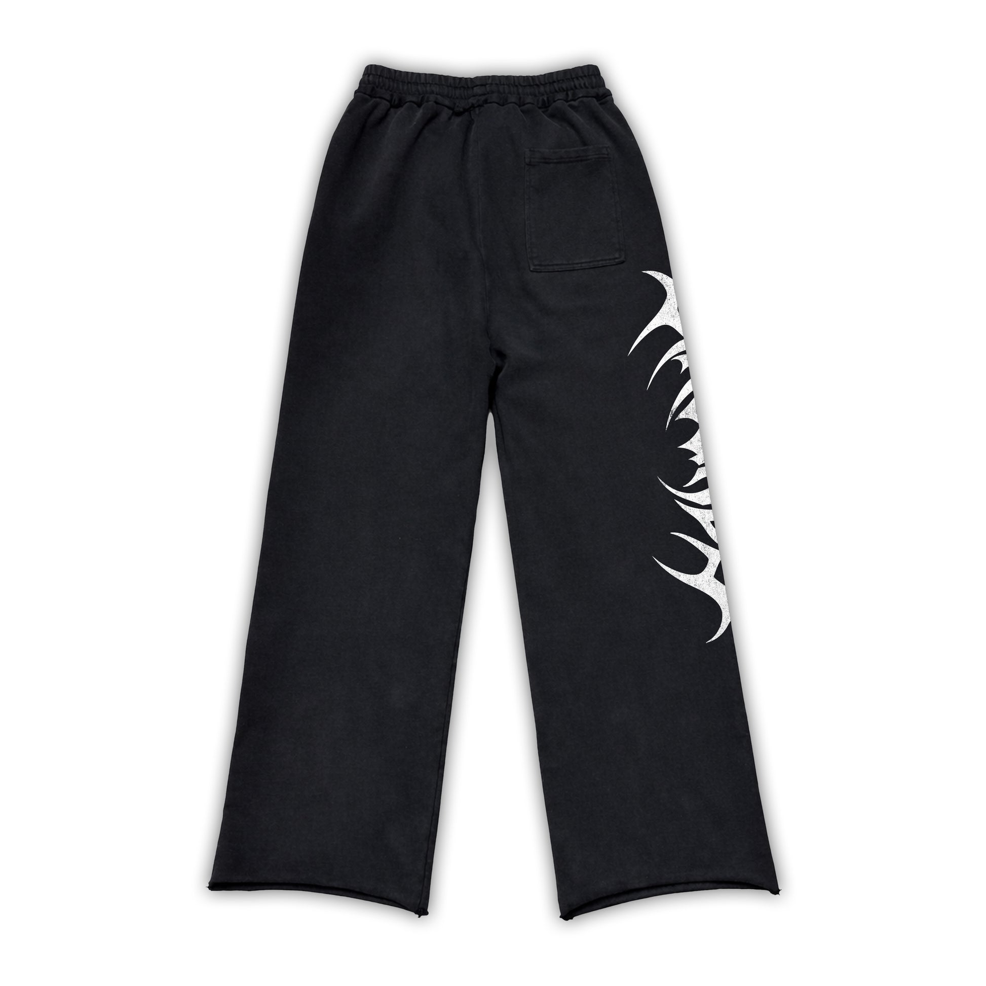 Designed with an intentionally baggy fit and natural stacking through the leg, slight heel bite is expected. Finished with functional pockets, a jumbo graphic hit along the side of the leg, and a raw hem at the opening.